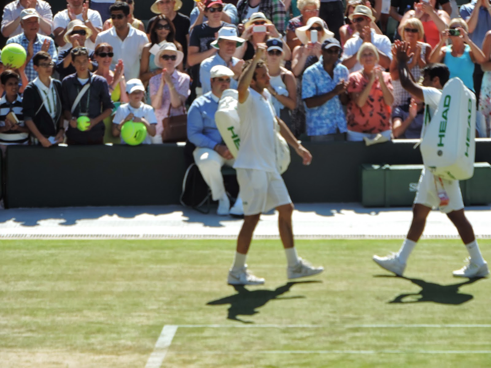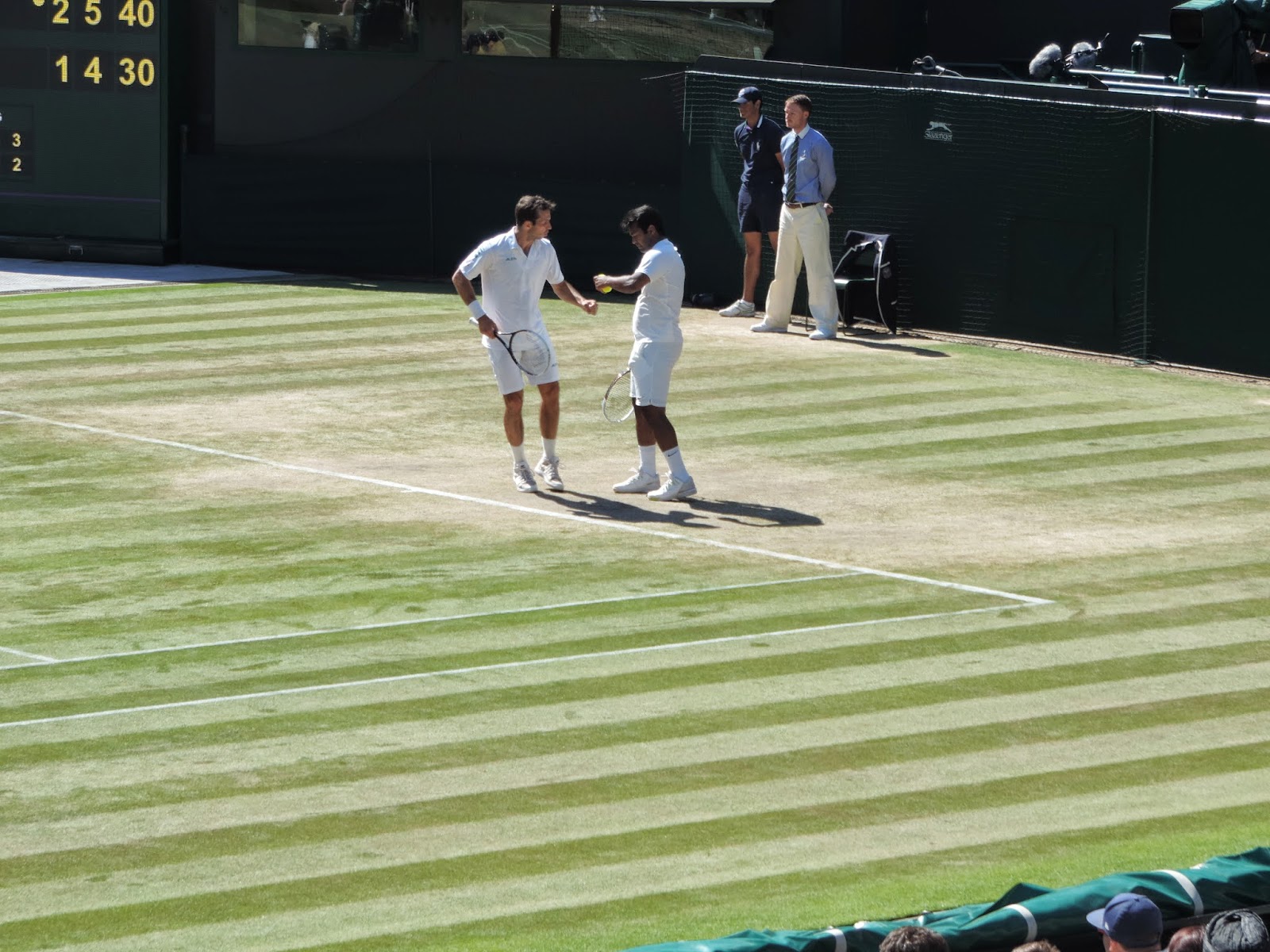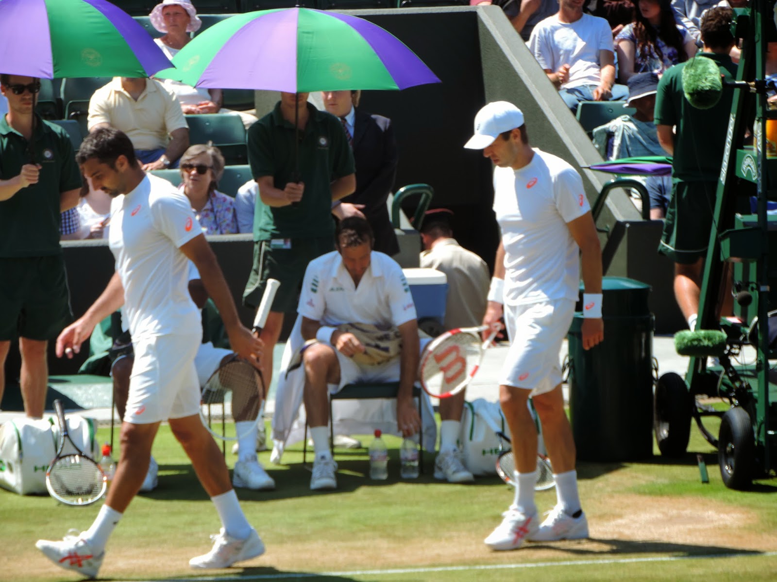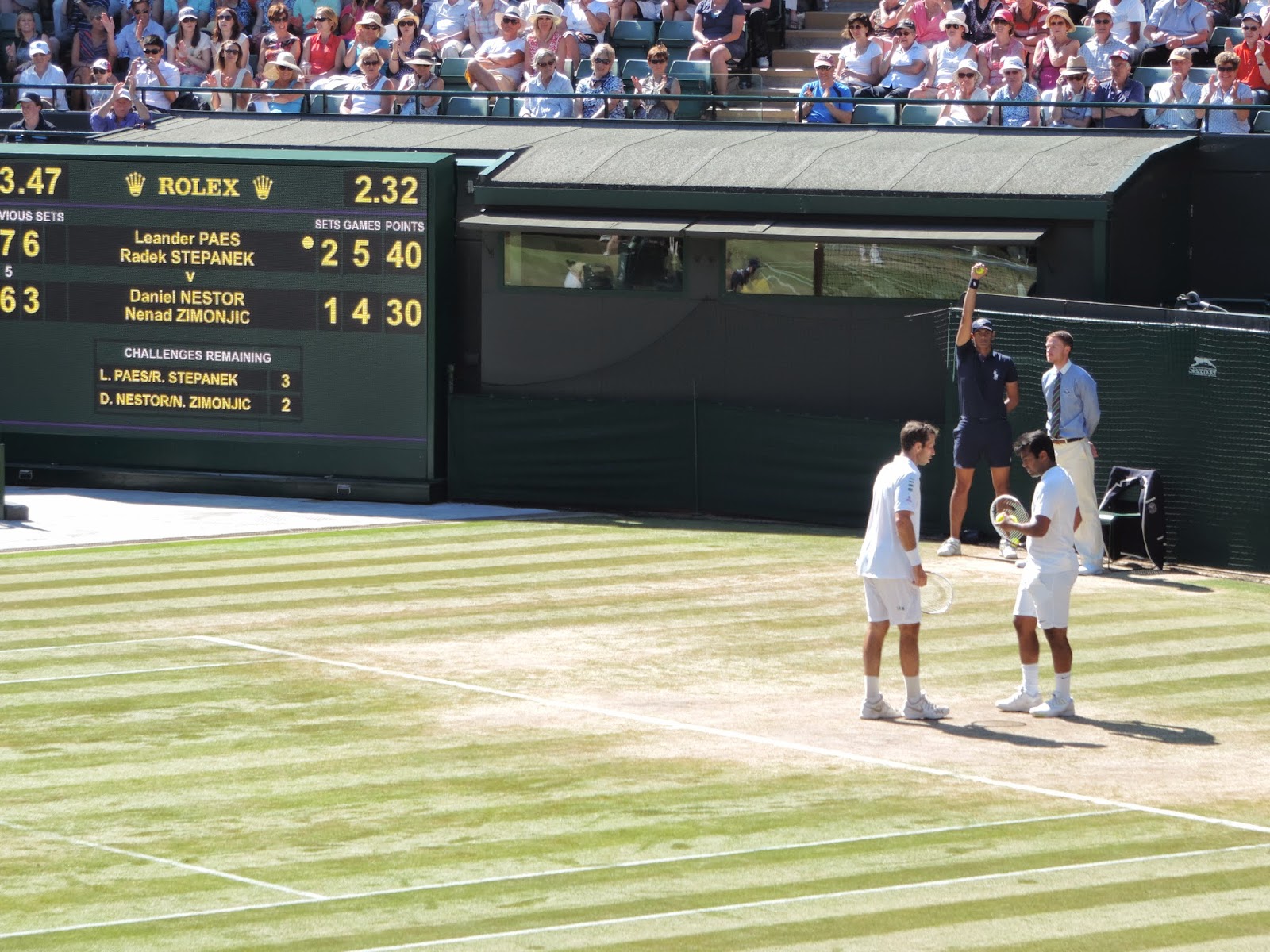 The first match on court 1 was the men's doubles quarter finals, Radek Stepanek and Leander Paes were against Daniel Nestor and Neand Zimonjic. As Stepanek had defeated Andy at Queen's a few weeks ago, I wanted the others to win at the start but when a spectator collapsed due to the 26C heat and Paes spotted him and gave him a water bottle, I was rooting for Stepanek and Paes. They put on a good show by doing some keepy uppy and Stepanek tormented one of the ball boys by keeping the ball under his foot which was a bit mean but it was all light-hearted! Stepanek played very well and they deserved to win as they took the match in 4 sets.