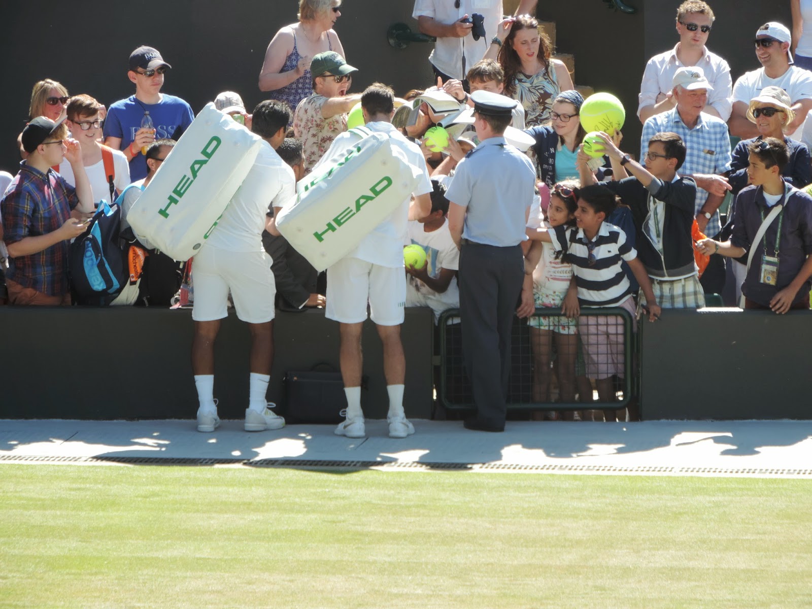 This is one of the reasons why I adore tennis, despite playing gruelling matches, these guys sign autographs and souvenirs immediately after matches. It shows how much the fans mean to players. |