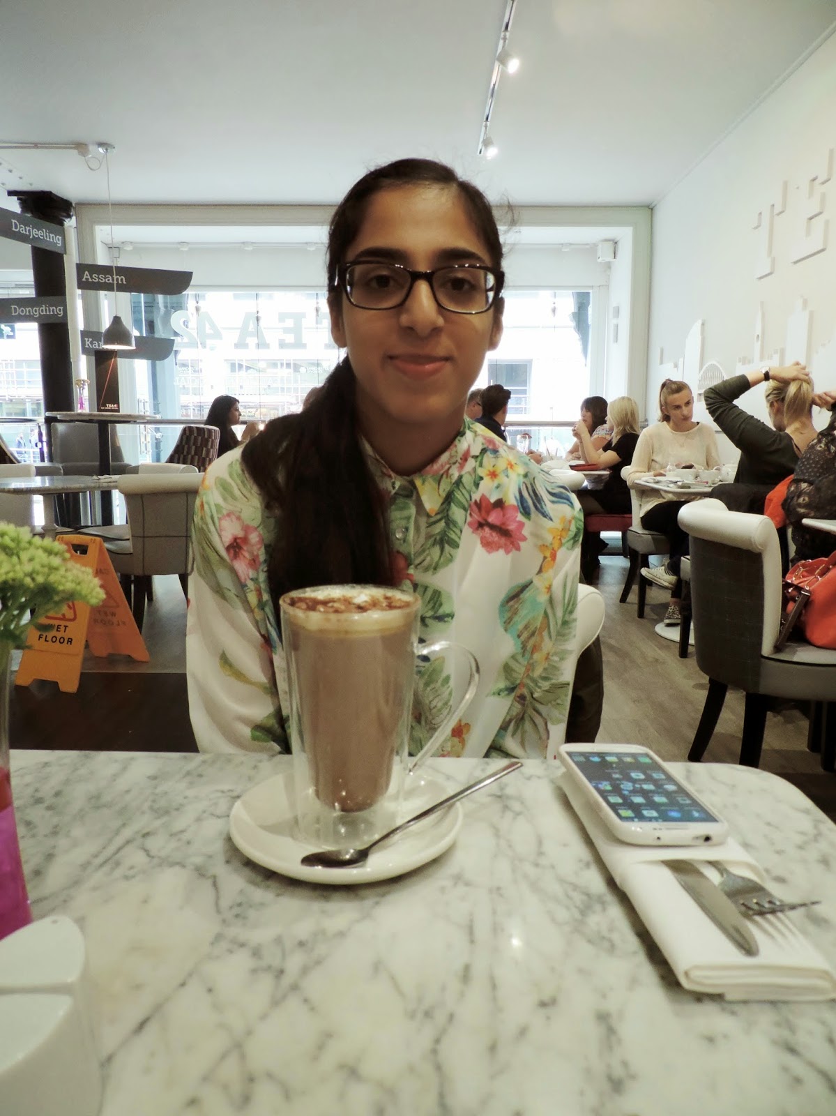 After a cheeky photo outside Dough, Misbah and I went to Tea 4/2 for cake. The interior was beautiful with a white, grey and pink colour scheme but not too girly. It would be perfect for a Mother's Day treat. If you're in Manchester and love carrot cake then you have to go to this place. It was the best carrot cake that I have ever tasted, it was such a light and flavoursome sponge, the icing wasn't sickly and you could see the actual carrot in there for once! Misbah had chocolate cake which she enjoyed too. I really liked the chocolate decorations on Misbah's cake. To accompany our cakes, Misbah opted for the hot chocolate which looked lovely and I went for the macchiato but hadn't realised that it would be a caffe macchiato not a caramel macchiato so didn't end up having it as a 5pm espresso is never a good idea. I'm already thinking of going back for the afternoon tea which looked spectacular!