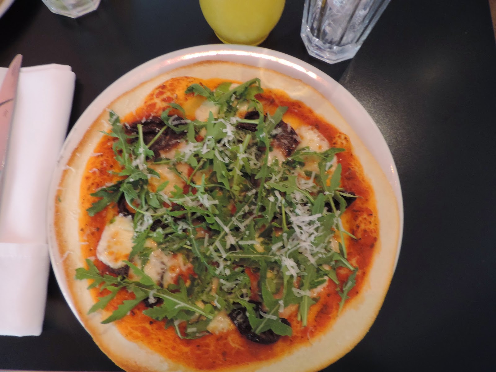 Last weekend, my lovely friend Misbah and I met up for lunch and decided to try out 2 eateries in Manchester which we had not previously visited. I absolutely love the Northern Quarter, it's my favourite part of Manchester because of all the quirky boutiques and cafes that it is home to. First, Misbah and I went to Dough Pizza Kitchen as Italian food is our favourite! It has a lovely, friendly atmosphere and is family friendly for those of you with little 'uns. The staff provided a prompt and professional service and knocked up our freshly baked pizzas in approximately 10 minutes whilst we admired our cute Orangina bottles.Both Misbah and I had the Rustica which was topped with sun blushed tomatoes, buffalo mozzarella, rocket and Parmesan.