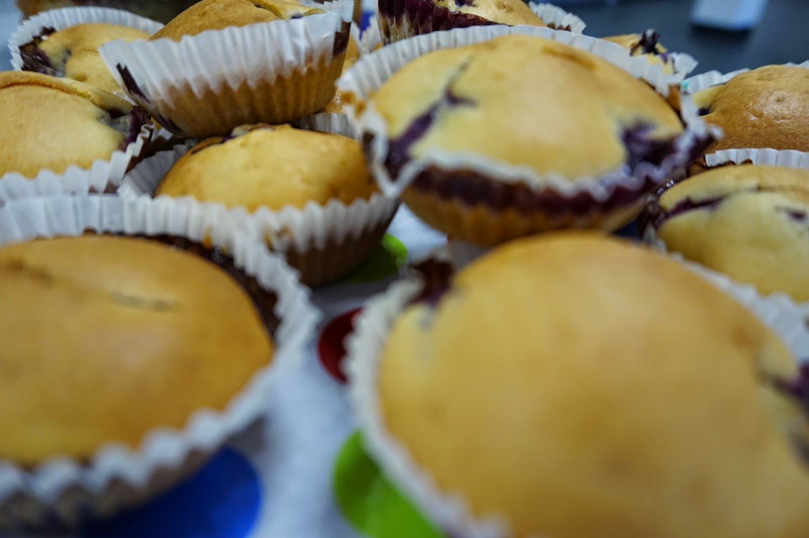 If you're not a fan of the tart flavour of both raspberries and lemons then blueberries are a great alternative whilst still keeping it healthy! Alex baked these adorable mini blueberry muffins :D I love the pops of gorgeous violet dotted throughout the cakes.