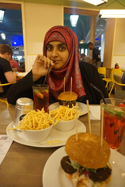 For lunch, we went to Gourmet Burger Kitchen as Sammia had not been before and I love their super skinny fries and falafel burger (I could live off falafel and I pretty much did whilst writing my literature review, it's one of my favourite foods ever). We also had the strawberry and elderflower fizz at GBK which was gorgeous and I really wish they sold it as a readily available bottled drink in shops.