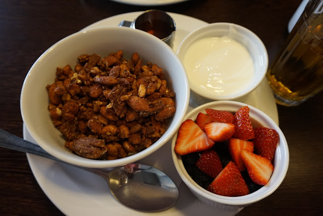 Friday - I've heard really good things about Moose Coffee in Manchester from several of my friends so one of my friends who hadn't been previously either and I finally went there for brunch yesterday. As I ate so late on Thursday night and it was so hot, I had the granola with yoghurt and berries. Misbah had the Vegi Mighty Moose which is essentially a cooked vegetarian breakfast. I will have to go back when it's cold again to try some of the coffee and cooked food. The portion sizes were huge (even the blueberries were larger than usual) but the food was so delicious! We were stuffed after brunch so went for a walk and sat by Manchester Cathedral which is also on my to-visit list this summer! Moose's yummy granola actually inspired me to make my own last night which I'll be having at sehri for Ramadhan on days when I want something more substantial than my usual smoothie.